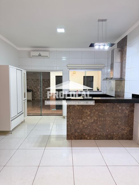 03 QUARTOS SENDO 2 C/ ARMARIOS EMBUTIDOS E 01 C/ SUITE , SALA , COZINHA C/ ARMARIO EMBUTIDO , BANHEIRO SOCIAL, AREA GOURMET C/ CHURRASQUEIRA , LAVANDERIA , DISPENSA E GARAGEM PARA 01 VEICULO. ALUGUEL + IPTU + SEGURO INCENDIO.